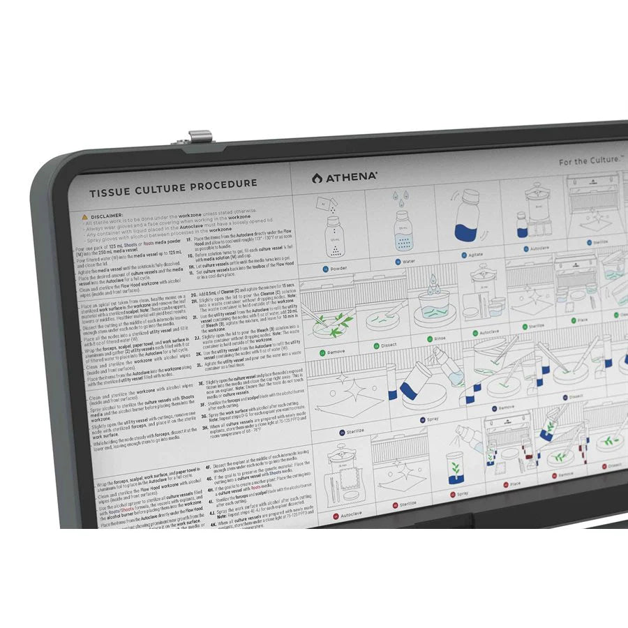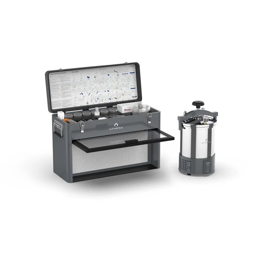 This Culture Kit includes everything you need to successfully perform tissue culture, whether you're at home or on the go. The portable Flow Hood and Autoclave are specifically designed for clean, consistent tissue culture operations. The integrated toolbox contains all necessary tools, instruments, and pre-formulated tissue culture media to create up to 120 Culture Vessels (refills available).